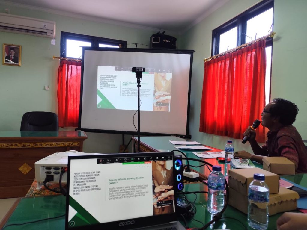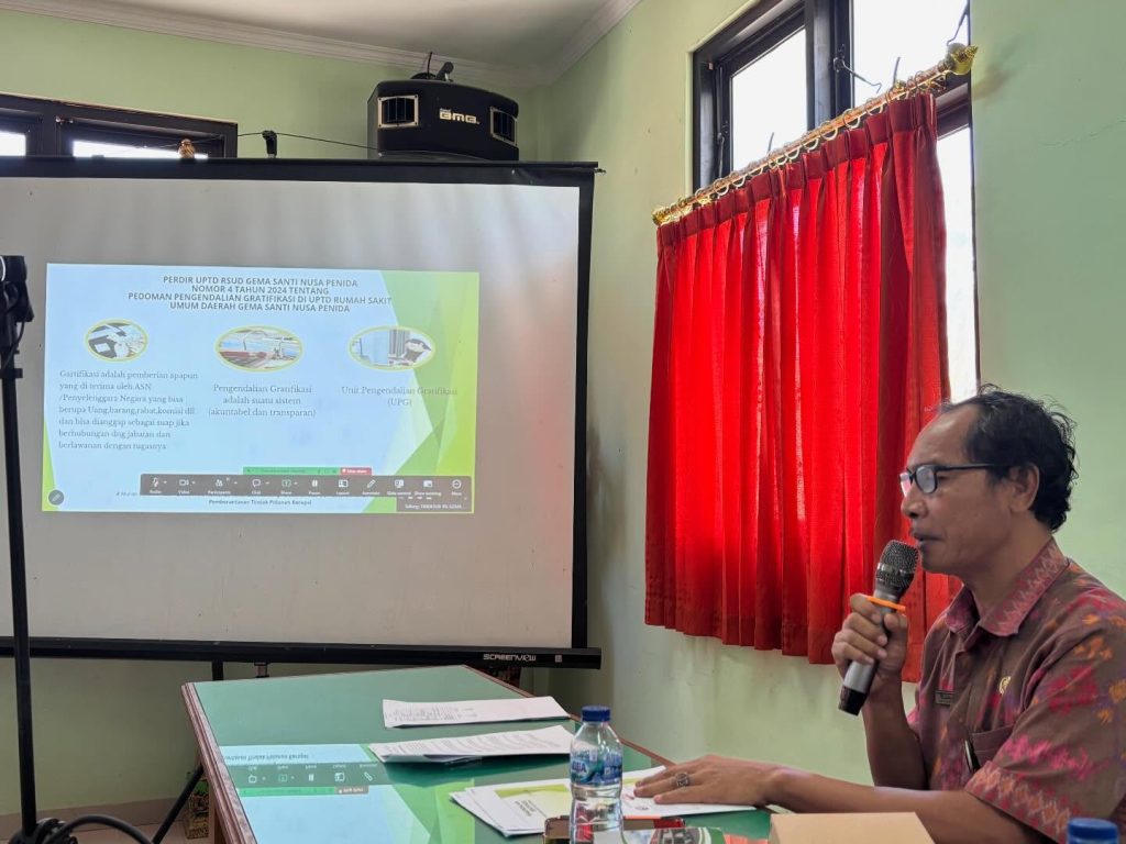 FKP kali ini mengangkat topik utama terkait Standar Pelayanan, dengan tambahan sosialisasi Perkembangan Pelayanan RSUD Gema Santi Nusa Penida, Refreshing Whistle Blowing System (WBS), serta Pengendalian Gratifikasi.