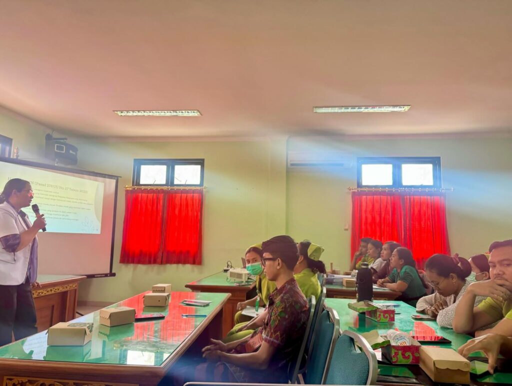 RSUD Gema Santi melaksanakan In House Training tentang Hak Pasien dan Keluarga sesuai standar pelayanan Rumah Sakit. Kegiatan ini berlangsung dalam dua sesi di Ruang Pertemuan RSUD Gema Santi mulai pukul 09.30 WITA – selesai.