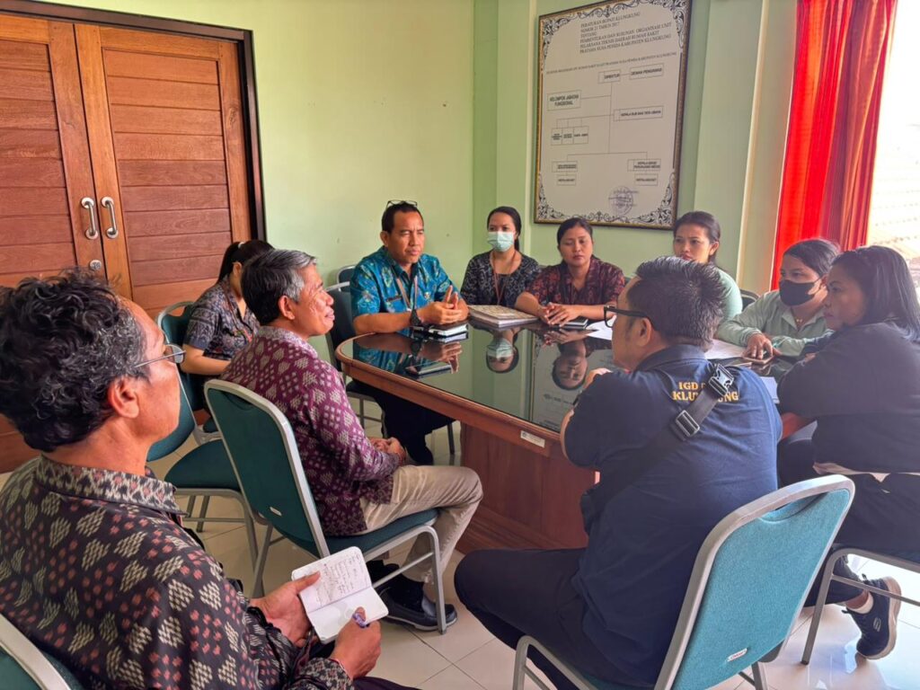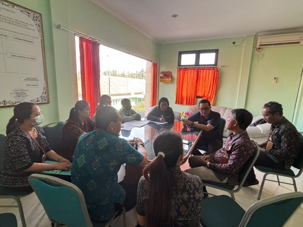 RSUD Gema Santi Nusa Penida menerima kunjungan dari Dinas Kesehatan Kabupaten Klungkung dalam rangka Monitoring dan Evaluasi (Monev) Mutu, Rumah Sakit Aman Bencana, serta Penyelenggaraan Kelas Rawat Inap Standar (KRIS).