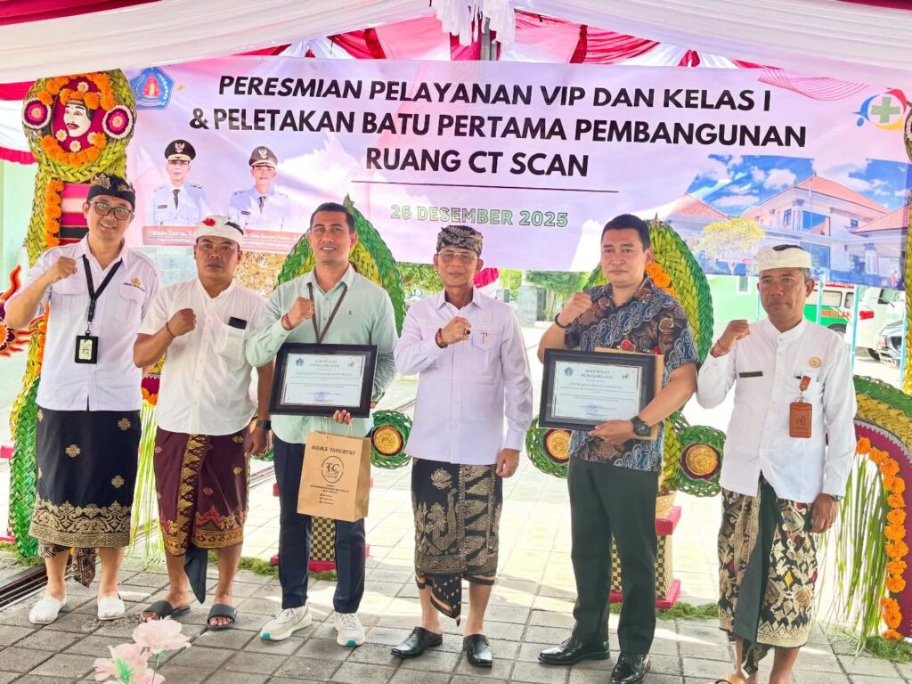 Pukul 09.00 WITA–selesai, bertempat di RSUD Gema Santi Nusa Penida, telah dilaksanakan Peresmian Pelayanan VIP dan Kelas I serta Peletakan Batu Pertama Pembangunan Ruang CT Scan sebagai bagian dari upaya peningkatan sarana, prasarana, dan mutu pelayanan kesehatan kepada masyarakat.